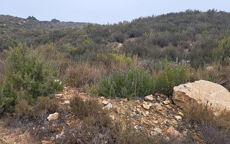 Aquest paisatge es caracteritza per terreny de relleu, secà i caps separats per parets de pedra seca. També és habitual veure les típiques cabanes de volta que servien als pagesos i ramaders per refugiar-se de les inclemències del temps.