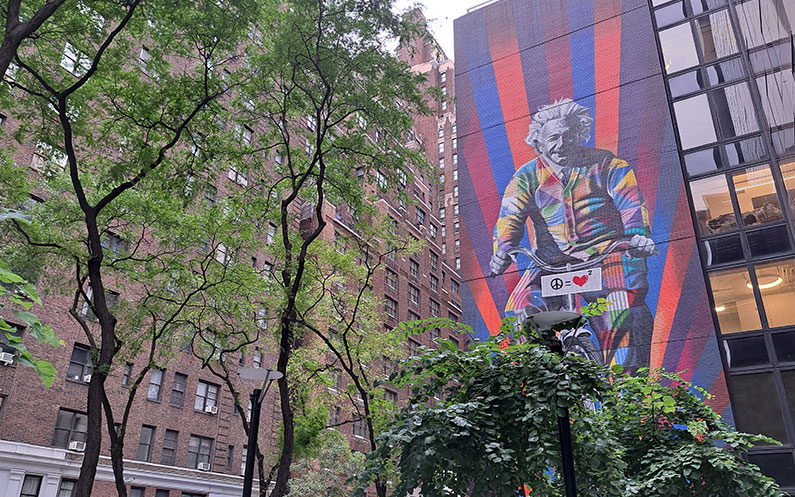 Si vols buscar murals, n’hi he localitzat 3. El del nen al east 42th street entre 3rd Avenue i 2nd Avenue. I els dos més famosos, el de l’Einstein amb la bicicleta al carrer 48 entre 3rd Avenue i Lexington Avenue i el dels herois del 11 de setembre al pròxim carrer, al carrer 49, també entre 3rd i Lexington Avenue.