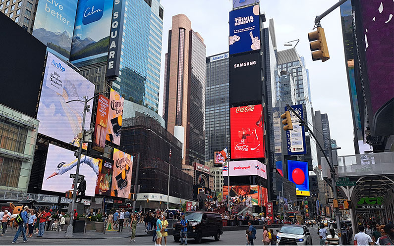 Comencem parlant pel que serà, possible, el primer peu turístic que posaràs a Nova York, la plaça més famosa del món mundial, Times Square ubicada entre West 39th i West 52nd streets i 7th a 9th avenues. Aquí hi has de passar durant el matí, per la tarde, a la nit i a la mitja nit, és la definició perfecta de la ciutat que mai dorm.