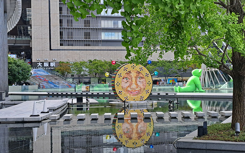 Segurament passaràs per la zona de l’estació principal de trens, Osaka Station ja que el més probable és que el teu tren o autocar hagi arribat aquí o surti des d’aquí. Aquesta zona no té gaire atractiu turístic, més enllà de certs, edificis d’oficines, però la seva gràcia és passar-hi a les hores pico i veure la gent robotitzada anant o tornant de treballar. La veritat que semblen trets d’una pel·licula, tots vestits de manera semblant, amb tons foscos i a ritme sincronitzat.