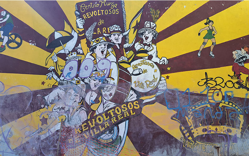 A diferents carrers de la ciutat, els corsos que no són res més que gent vestida amb uns pantalons i casaques d’estil frac típics de les murgas, on cada agrupació té un estil i color però desprès cada individu decora al seu parer. Al davant de tot van els nens, desprès venen les noies, la banda i per últim els nois.