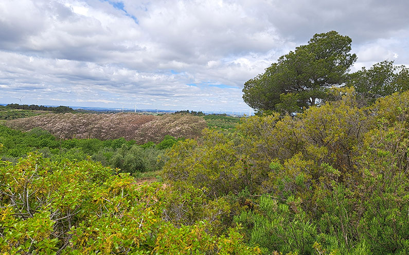 El primer, les Garrigues Altes, és el típic paisatge de camps d’oliveres i algunes zones boscoses de garriga i pi blanc.
