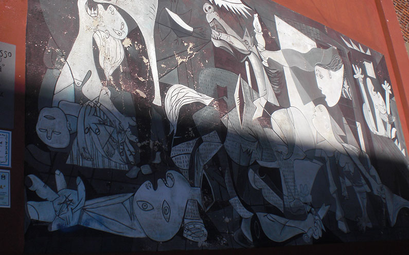 En un raconet, sobre el carrer Dr Nicolás Repetto amb Galicia hi ha un mural del famós quadre de Picasso, el Gernika, sobre una paret d’un magatzem de ferros.