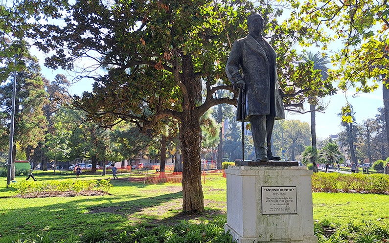 Don Antonio Devoto era un immigrant italià que tenia el títol de compte per la seva labor durant la primera guerra mundial. El 1888 l’enginyer Carlos Buschiazzo va realitzar l’entramat de la vila que Devoto volia construir a l’estil de les europees, per això, és un dels pocs barris que els seus carrers no segueixen l’estil quadriculat, característic de Buenos Aires.