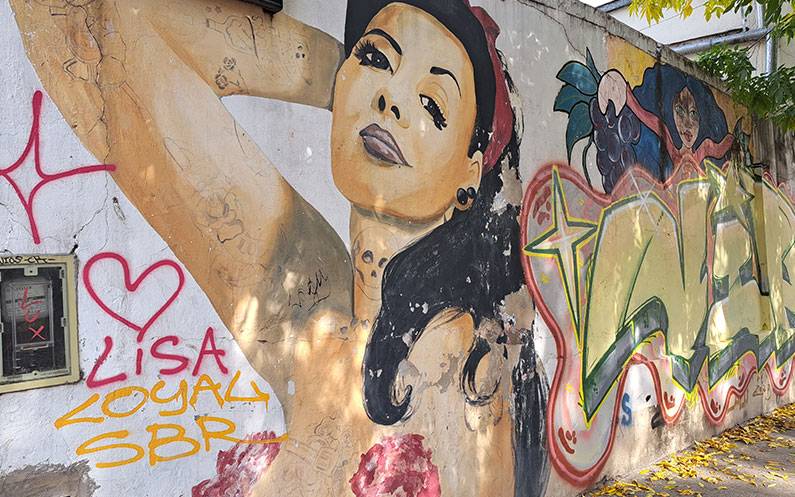 No hi ha gaires murals o street art pels carrers de Villa Real, la majoria son murals de barri, que en dic jo, és a dir, l’escut de futbol, la murga, algun homenatge particular, etc.